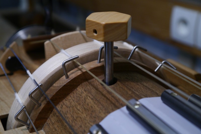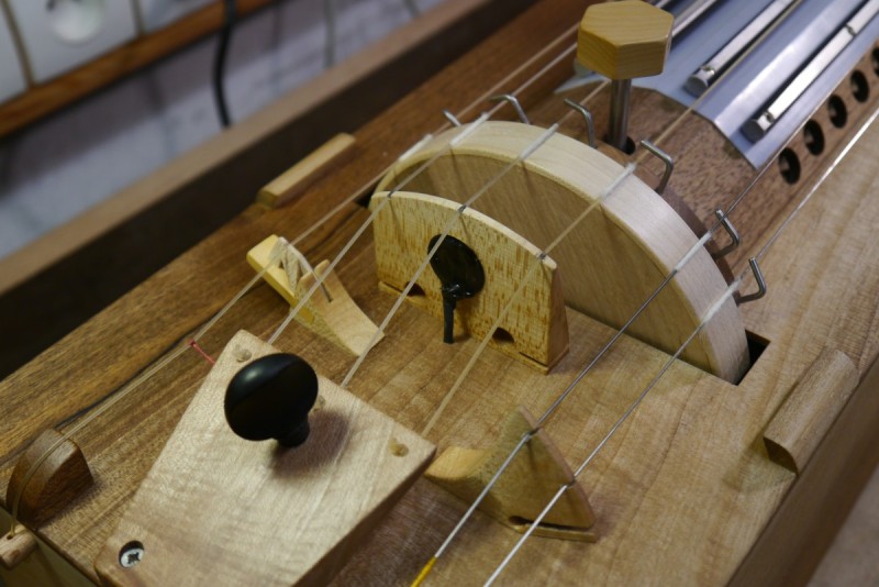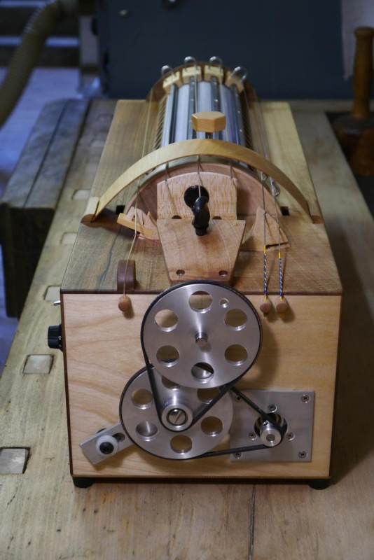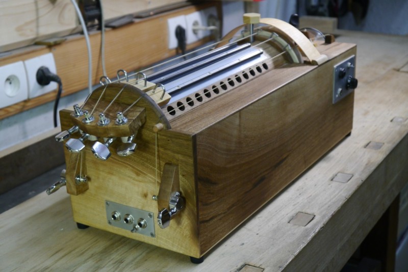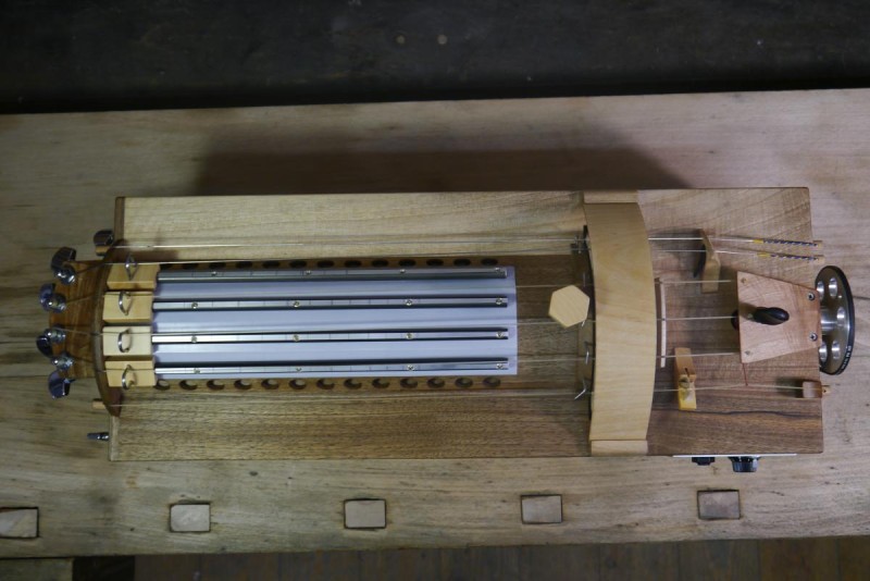 Inspirée de la vielle à roue, et munie d'un moteur, elle permet de jouer un accord continu, de le modifier en temps réel à l'aide de curseurs se déplaçant le long des cordes, mises elle-même en vibration par une roue-archet.