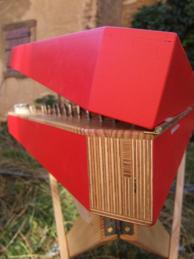 Cet instrument a été réalisé à la demande d’un compositeur de musique contemporaine, Eric Maestri, et qui intervient dans une pièce écrite pour l’ensemble Vortex.