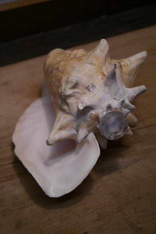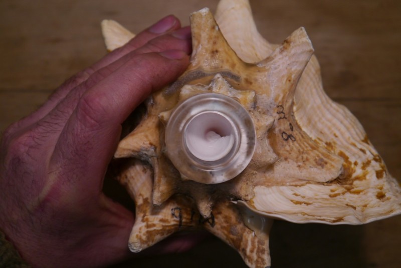 Le principe de la conque comme instrument est fascinant: la stratégie du mollusque en sécrétant sa coquille, est de créer une surface la plus lisse et continue possible pour ne pas se blesser, tout en élargissant son espace vitale au fur et à mesure de sa croissance. La stratégie du facteur d'instrument à vent est à peu près la même, créer une colonne d'air la plus continue possible pour ne par créer de turbulences indésirables dans l'air, et éventuellement dans certains cas, élargir la section très progressivement. On peut comparer le mollusque à une sorte de fluide vivant. Quelle joie donc, en tant que facteur d'instrument, de se glisser dans l'objet fabriqué par un mollusque, et d'en faire légèrement dévier sa fonction tout en mettant en valeur la stratégie qu'il a développé!