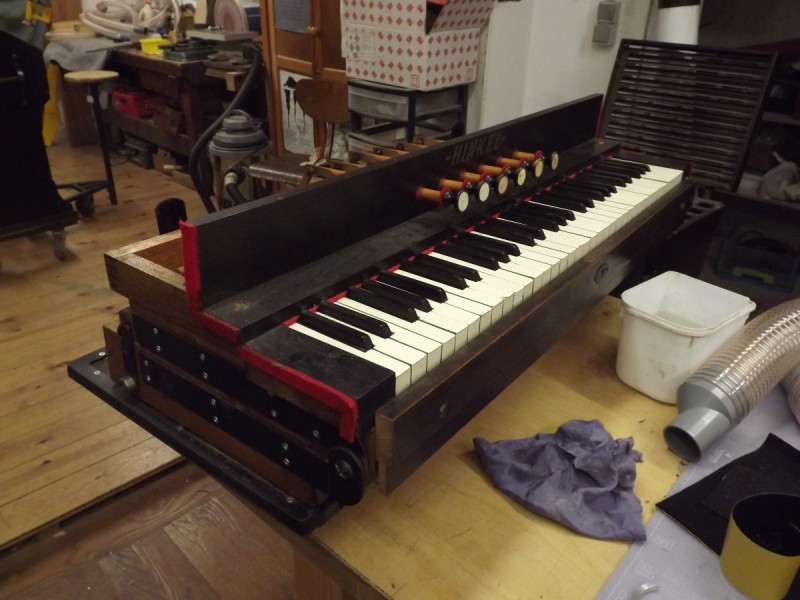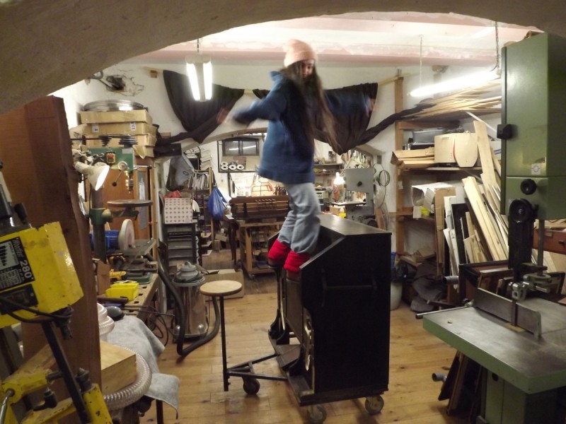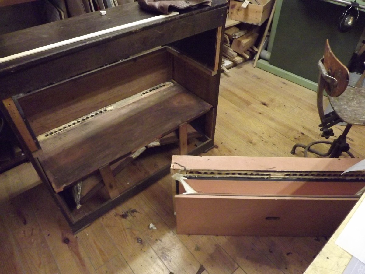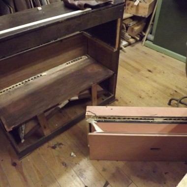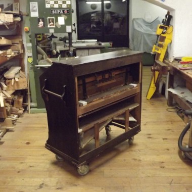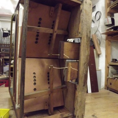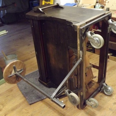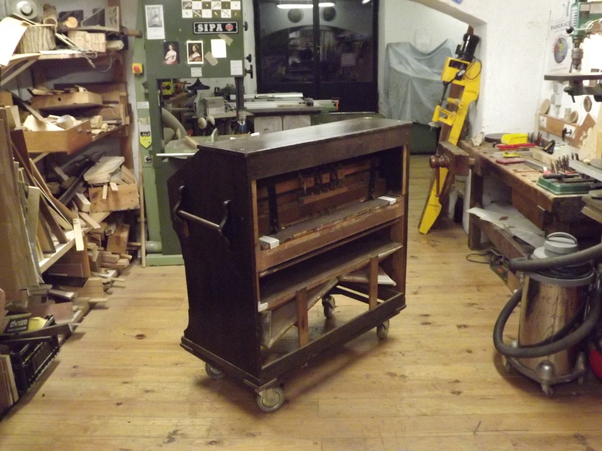 L'idée est de restaurer l'instrument qui a quelque peu déjà morflé (étanchéité, quelques notes mortes, mécanique, structure fendue et décollée etc), et de le rendre modulaire, afin que les comédiens puissent le démonter sur scène, et en montrer son fonctionnement. Une fois le meuble vidé, il se transforme en petit théâtre de marionnettes. Petit détail, les comédiens veulent aussi pouvoir grimper/sauter dessus... et faut que ça tienne.