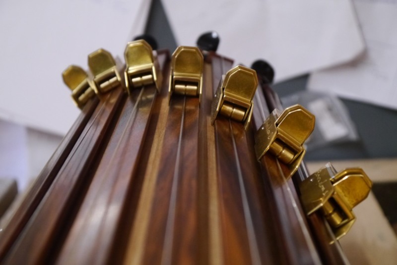 • curseurs-capodastres autoverrouillant, se déplaçant le long de touches, plus de potentiel dans le jeu au doigt (mélodie, polyphonie, virtuosité)