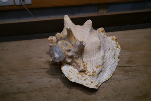 Le principe de la conque comme instrument est fascinant: la stratégie du mollusque en sécrétant sa coquille, est de créer une surface la plus lisse et continue possible pour ne pas se blesser, tout en élargissant son espace vitale au fur et à mesure de sa croissance. La stratégie du facteur d'instrument à vent est à peu près la même, créer une colonne d'air la plus continue possible pour ne par créer de turbulences indésirables dans l'air, et éventuellement dans certains cas, élargir la section très progressivement. On peut comparer le mollusque à une sorte de fluide vivant. Quelle joie donc, en tant que facteur d'instrument, de se glisser dans l'objet fabriqué par un mollusque, et d'en faire légèrement dévier sa fonction tout en mettant en valeur la stratégie qu'il a développé!